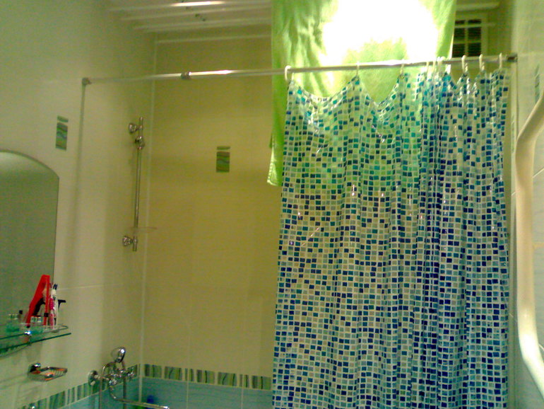 Ну,неудобно бегать на балкон с вещами. я еще и таз не могу купить приличный,таскаю в руках. У меня на балконе такая,как выше Екатерина выложила.Вот моя ванная,куда там веревки?)