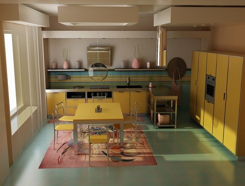 Еще вариант всю кухню сделать светленькой, белой или серой, сделать фартук с орнаментом, а яркими только детали, что то вроде того