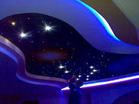 У нас вот так будет. В центре круг из гипсокартона и натяжной потолок в распечатанной картой, звезд 50 будет светиться