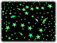 1. Звездочки, которые клеятся на потолок на 2х сторонний скотч и ночью светятся, потом можно будет снять. 2. Есть обои со звездами, они так же светятся ночью.