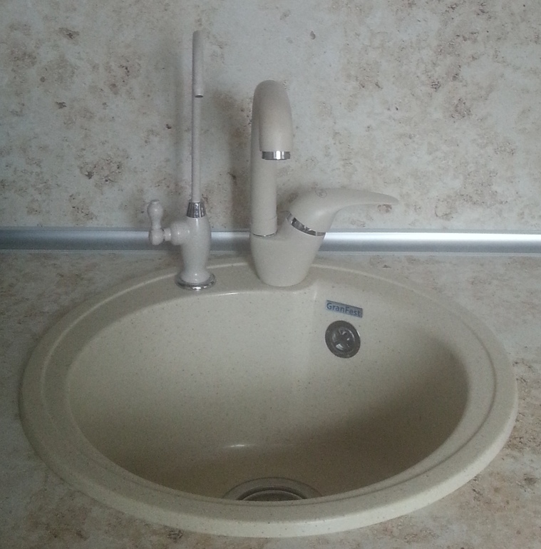 Прости попристаю) А на мойке не остается белых пятен? Извести и т.д.? У меня столешка очень похожа, вчера заказала) Черная в таких же "крапушках") Вот раздумываю теперь над мойкой)