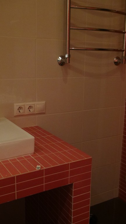 у нас на подобии первого варианта только ярко оранжевый с белым и салатовые аксы, за 2 года ни капельки не надоело, только не нарадуемся, яркая ванна это здорово!