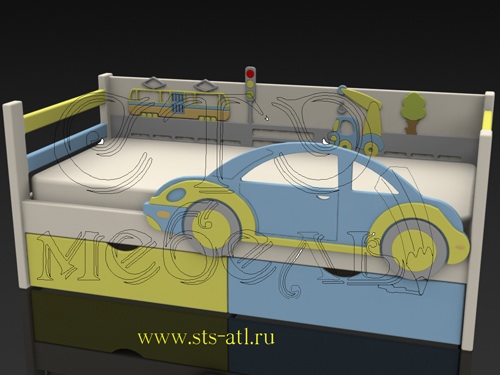 У нас еще обои не выбраны. Мебель будет в бежево-голубых тонах. Кровать с машинкой.