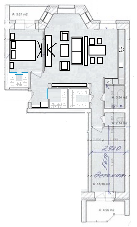 Хочется коридор полноценный с системой хранения, но не хочется перегружать, и самая главная проблема совместить кухню с гостиной , т.к стиль квартиры классика с элементами прованса в голову не идет форма этой перегородки или проема.Вот так вот заезжать в квартиру в декабре, а ремонт ёще не начат нет идей, и страшно ошибиться ,т.к. был уже неудачный ремонт в нашей практике,а здесь чистый лист пространство для творчества поэтому и HELP!!!!!