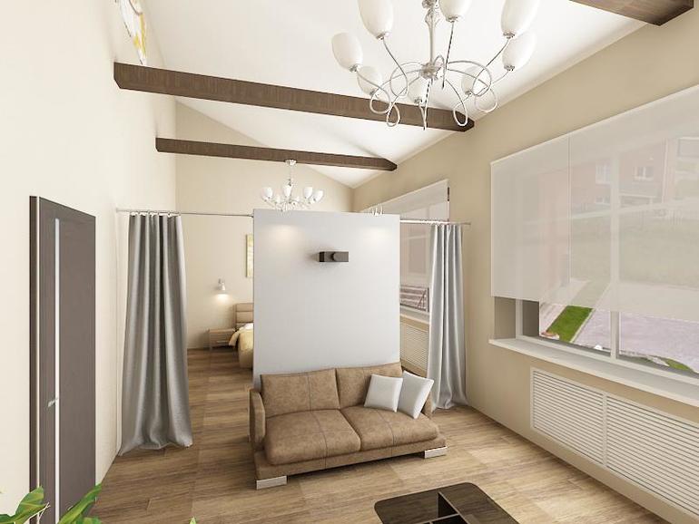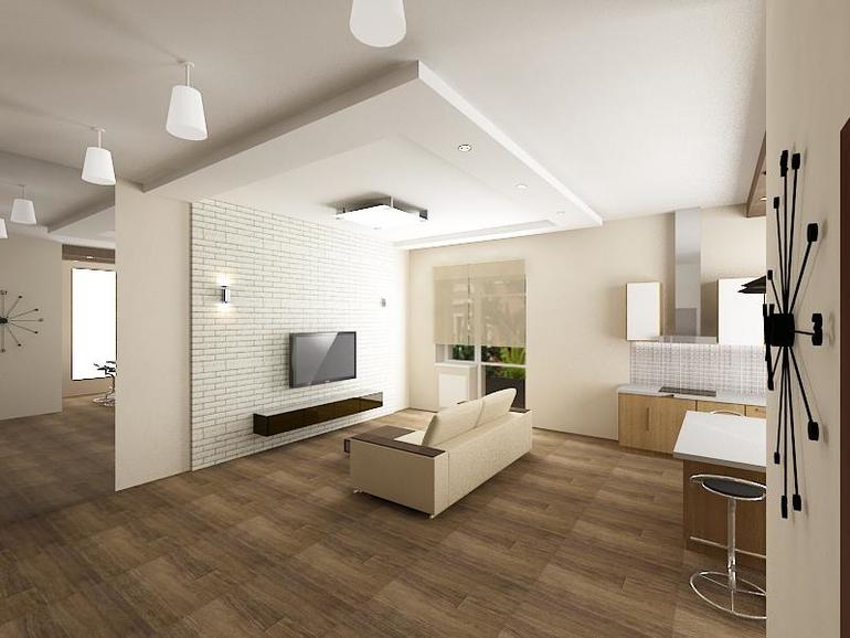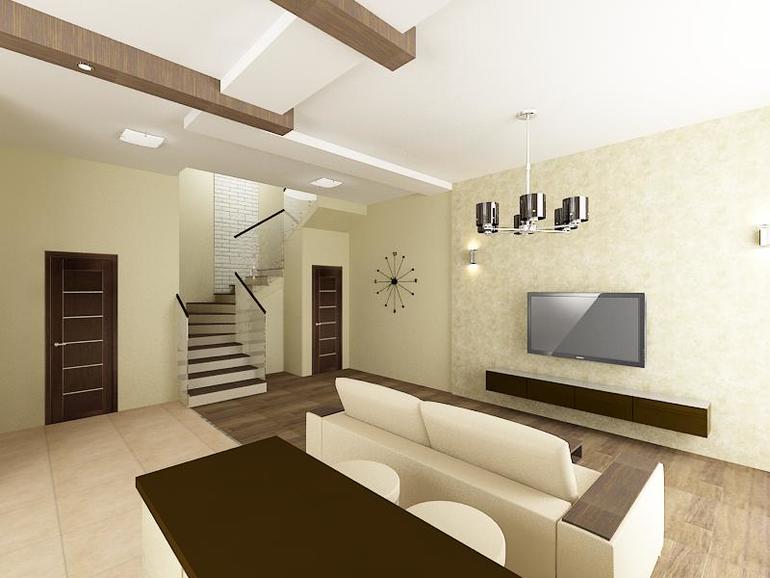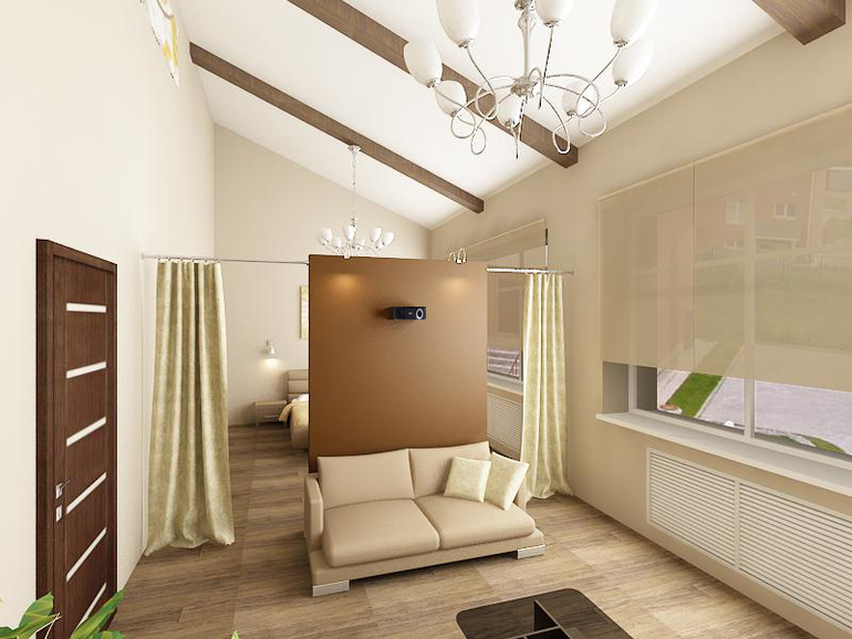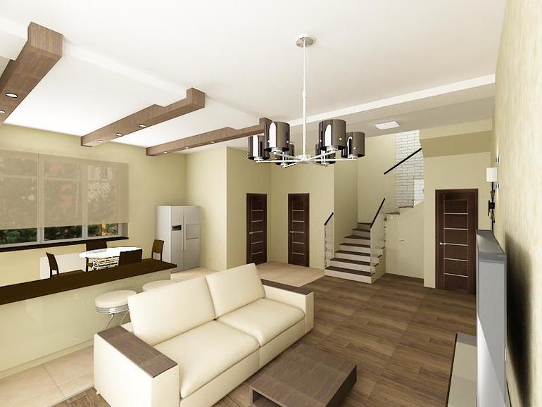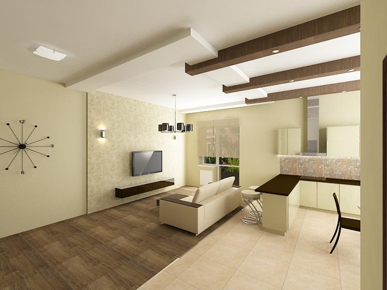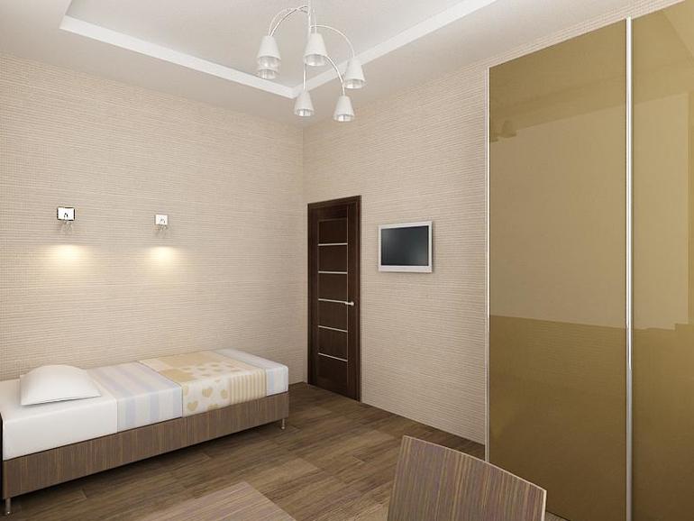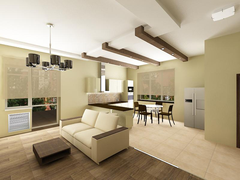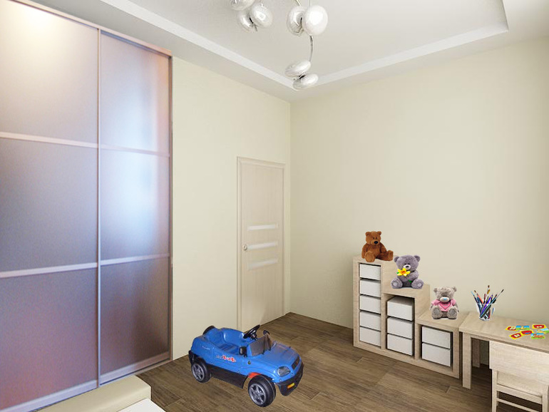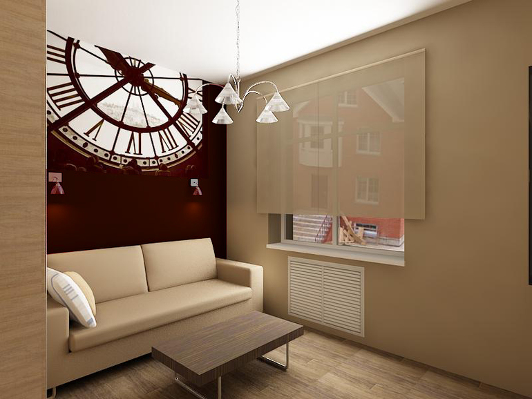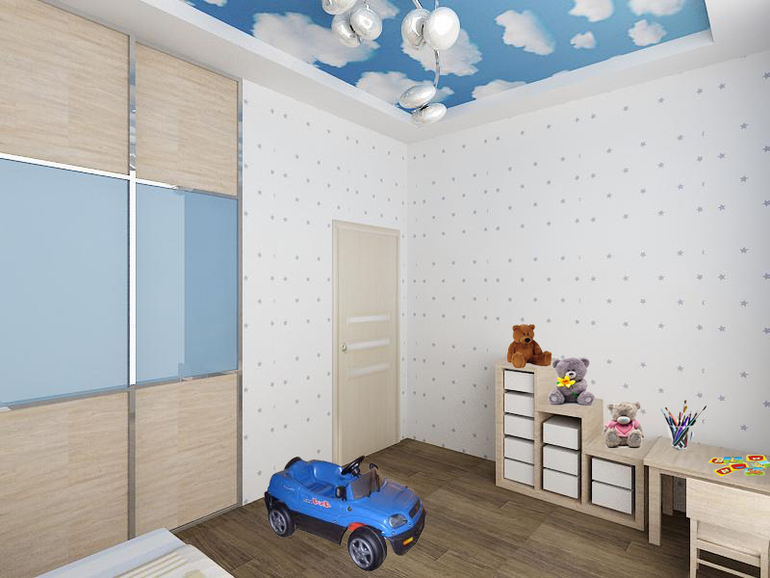 Она просила, чтобы был попроще интерьер. Чтобы было все просто, вот такая у меня была задача. Я ей делала варианты, она выбрала то что ей нравилось и я еще дорабатывала потолок. В конечном счете она одобрила.
