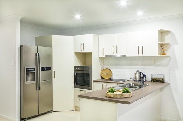 а может просто столешницу туда продолжить? хотя, тогда верхние шкафчики не так гармонично будут смотреться