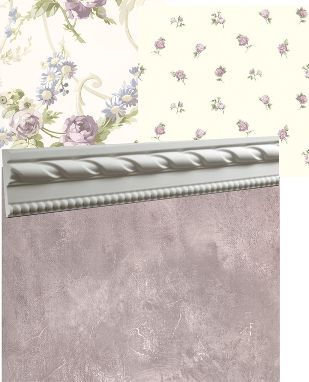 сторону где кровати, можно поделить на верх-низ, верх цветочный, низ монохромный, как в эркерной зоне. Разделить все красивым полиуретановым молдингом
