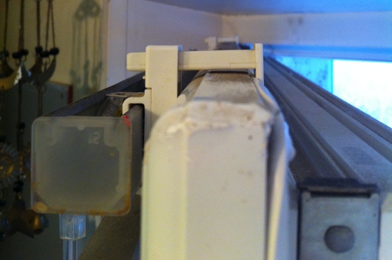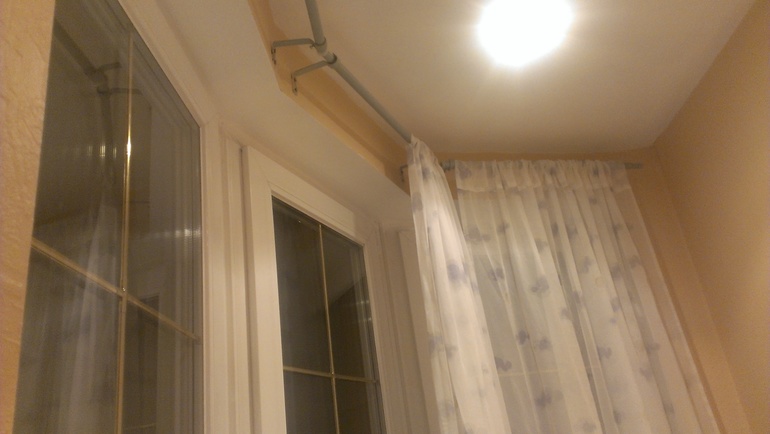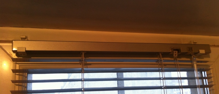 Вот фото римской шторы у родителей на даче, качество плохое, но видно, что она крепится к окну, получается карниз присверлен? Механизм поднятия шторы- цепочкой поднимается наверх, а вниз они сами скатываются если чуть приотпустить цепочку.