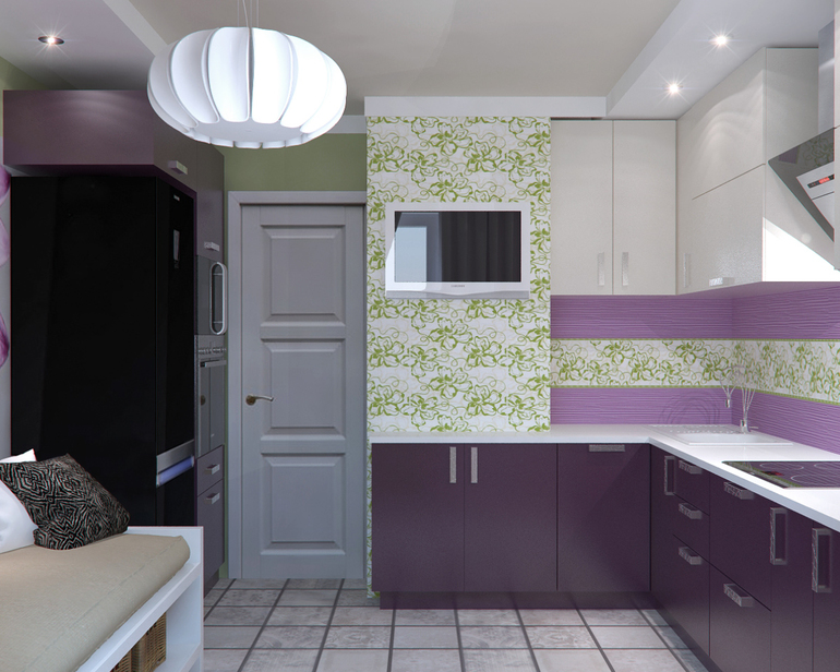 (Фартук тоже будет из этой плитки), низ будет баклажан глянец, верх- молоко глянец.