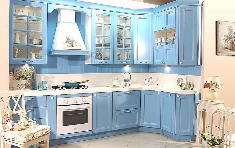 Мне очень нравятся в мятном цвете, голубом и белом с серебристой патиной. Без открытых полочек и стекол ни как(( Смотреться не будети очень многое будет зависить от отделки - пол - стены - шторыможно сильно "вытянуть" или "убить"