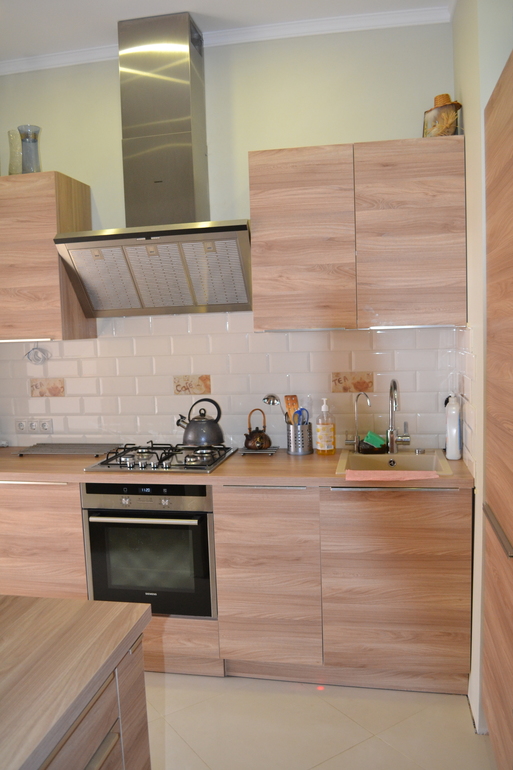 Татьяна, простите, что не по теме, а где у Вас выходит газовая труба, а то я раньше над этим не подумала и теперь она у меня прямо в центре стены на месте фартука получается, теперь ломаю голову, как спрятать сию " красоту " :(