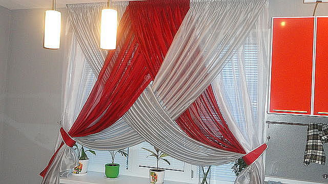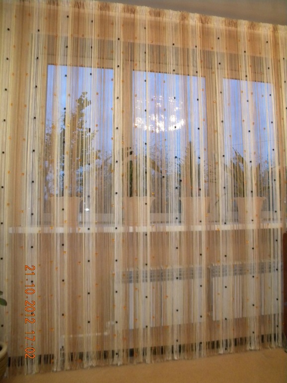 Только по-короче , чуть ниже окна и вырезанные , типа небольшой аркой , или наискось ( как косая чёлка ))) ) . Или , бусины вот такие вот , шикарны