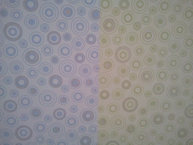 Если вот в такого рода горошек, ненавязчивый, то я бы поклеила. Мне кажется будет очень нежненько, мягко и уютно!!!!Ну а мои кружочки ниже