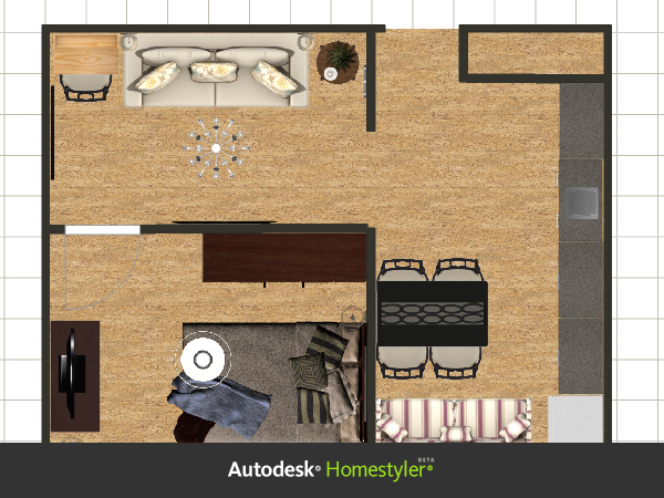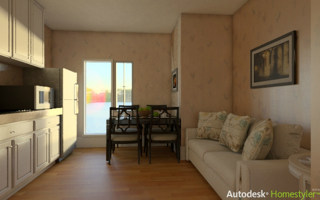 Чтоб было понятней по 2-му варианту, вот визуализацияКухня. Несущие пилоны по краям остались, а стена посередине ушла в сторону бывшей гостиной