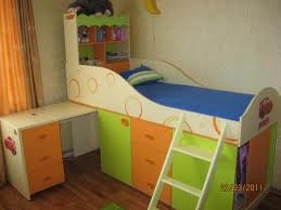 может купить белую кроватку и какую то систему для хранения, мне кажется белое проще чем цветное вписать в любой интерьер