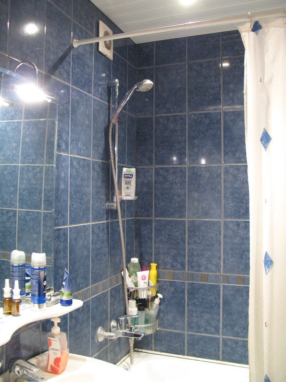 У нас синяя. Мне очень нравится. Тоже все говорили, что будет тяжело и темно. Но, в контрасте с белой сантехникой и белым потолком, очень даже не плохо.