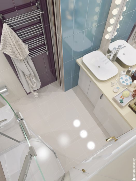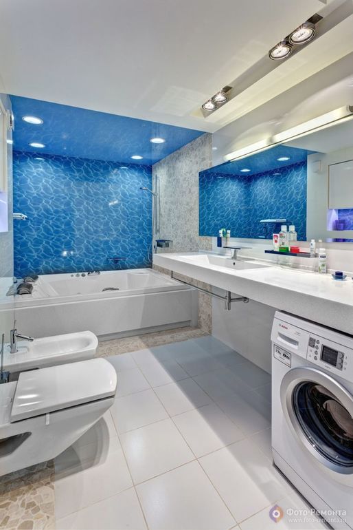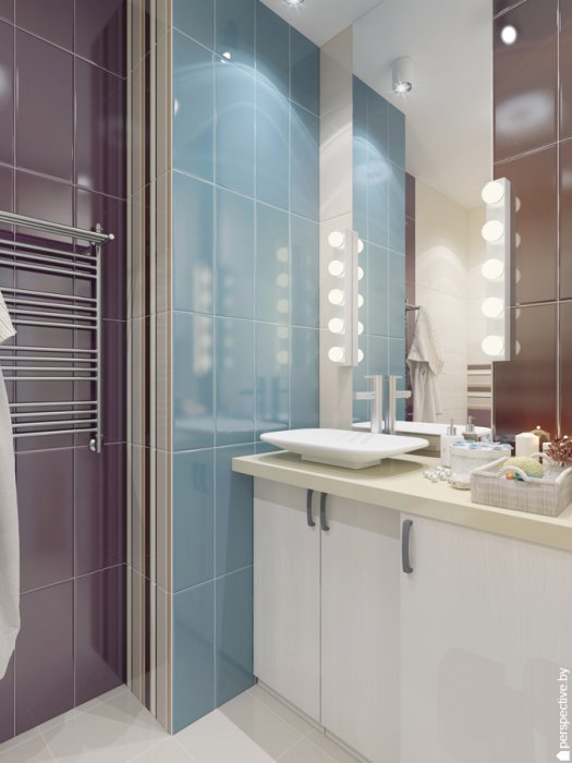 я бы не стала синюю плитку класть, видела в живую как общественные туалеты, как вариант белый и ярко голубой