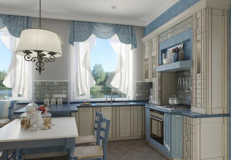 голубой цвет-красивый...., но вот не нравятся совершенно открытые полки(лиший пылесборник)... и низ шкафов сделан так, что стенка шкафа- это как бы еще и ножки, и это быстрее приходит в негодность, лучше сделать кухню на ножках и закрыть цоколем. короче, цвет красивый, а сам кухня - нет.