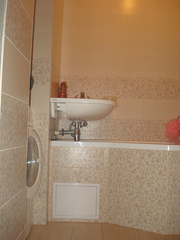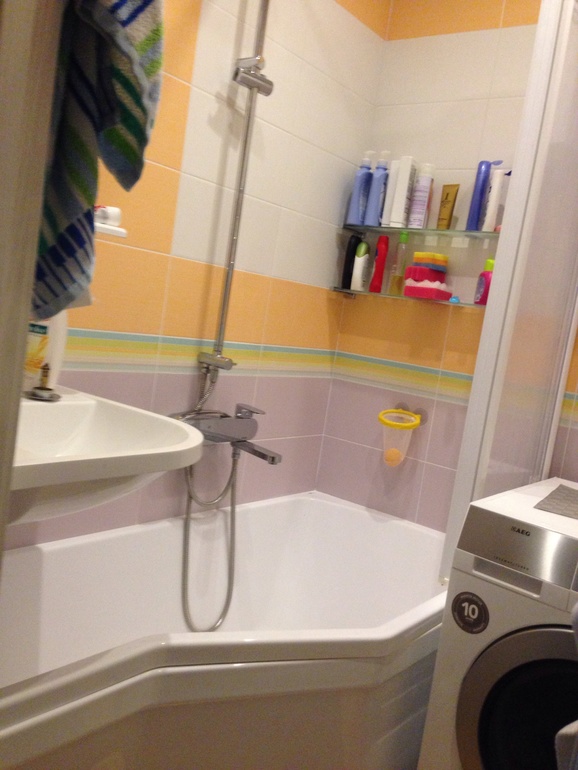 Я подобное видела на картинках. Хороший вариант для совсем маленьких ванн в 9,12-ти этажках.