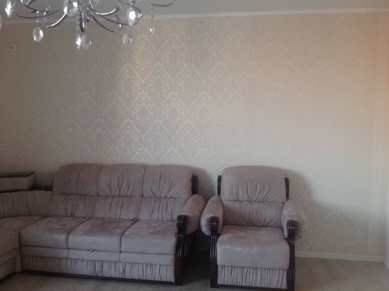 У нас такие же, но цвет бежевый, в гостиной вензель на одной стене и полоски на остальныхПо опыту могу сказать, что лучше вензель и однотонные наверноеНо и наш вариант не плох конечно