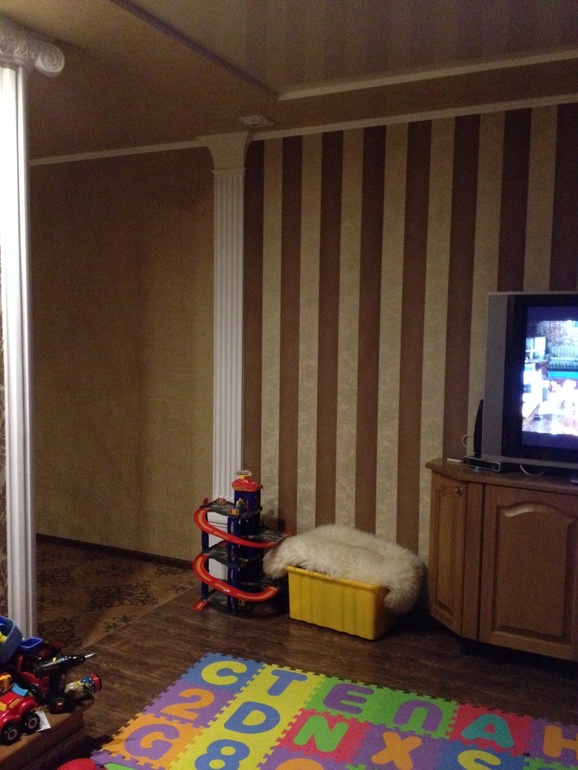 Мне кажется не все поняли, что обои Вы выбираете для зала! Моё мнение полоска шикарна для КОРИДОРА , как в Вашем примере, а вот в зал скорее вензель с однотонным, тем более и девушка Вам советует по своему опыту, просто в зале вы низ практически весь заставите( диван + шторы+ шкаф ) и останется у Вас один полосатый верх,а вензель красиво, но вот как клеить везде или нет ? Вопрос?