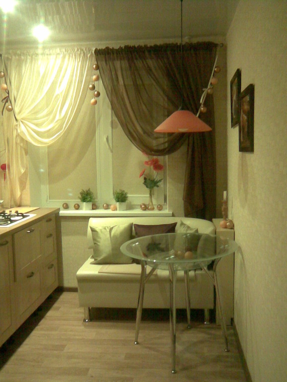 коричневую штору я бы убрала и заменила на белую или светло зеленуюсветильник легкий, стильный, не выбирайте совковые варианты, что предлагают ниже:))