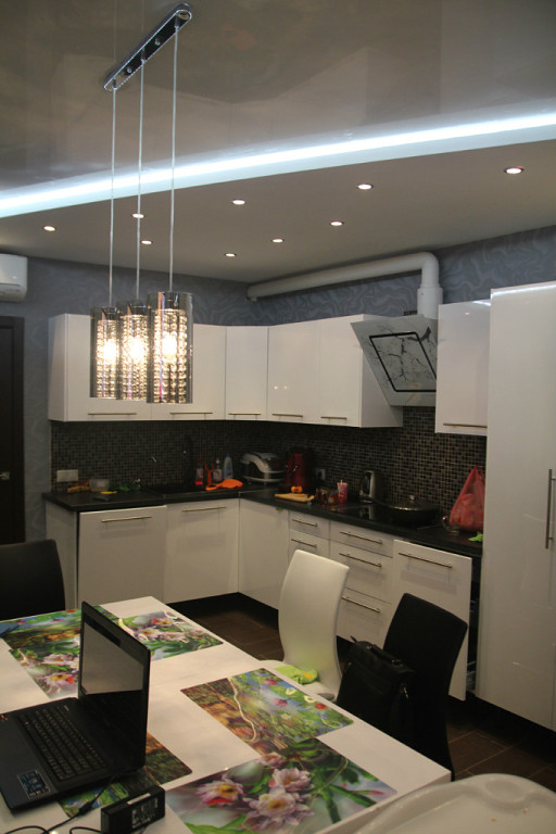Если бы не знала, что у шкафов такая глубина, то и не заметила бы) У вас еще и ручки выступают, я потайные хочу. Теперь буду думать, на какую высоту подвесить их...Спасибо за фото! Кухня красивая. Понравились стулья- черный и белый)
