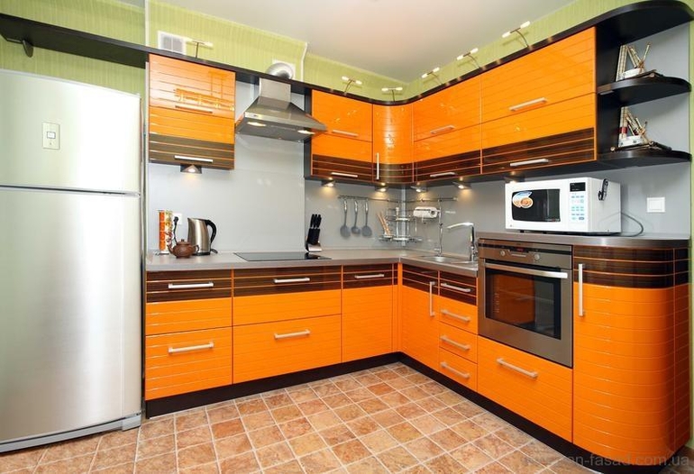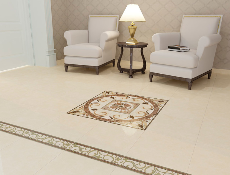 Не соглашусь с Вами кантри мотивов у меня нет, плитка на фартуке абсолютно глянцевая, да и на полу будет вот такая