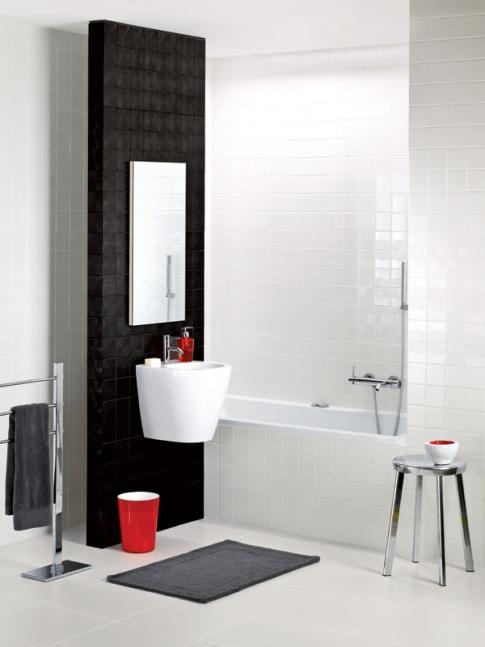 горизонтально хочу ложить...две стены полностью белые...стена где зеркало снизу и до верха черная плитка по бокам бордюры...а над ванной не знаю может декор пустить или в шахматном порядке черную/белую по углам сделать