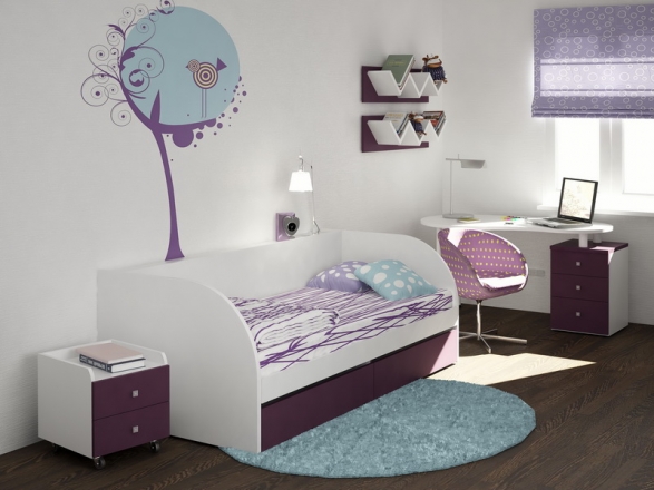 Мы поклеили похожие обои в комнате дочери (у нас бело-серо-фиолет. цветы и менее яркие полоски). Эти обои очень активные. Изначально я планировала выделить цветами одну стену, остальные стены в полоску. Но поклеив полосатые обои, показалось, что у меня рябит в глазах и мы добавили больше "цветов". Комната получилась динамичная. Дочери и родственникам нравится. Но я то мечтала о нежной "принцесскиной" комнате))))В связи с "активностью" обоев и мебель пришлось заказывать более современную, т.е. не тот вариант, который планировали ранее.Вот наши обои и мебель, которую мы заказали.