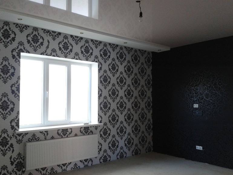 Интерьерное решение гостинойИмеется гостиная с одной чисто черной стеной, а остальные такие