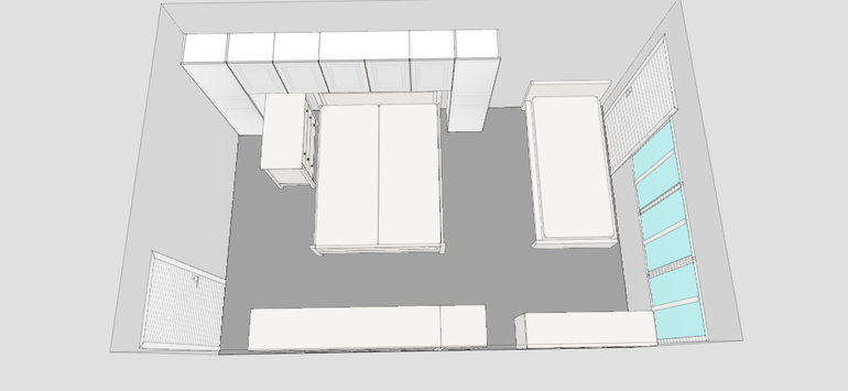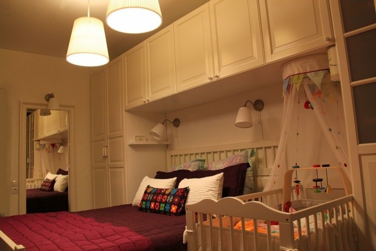 Интерьерное решение спальниМы живем с мужем и сыном сейчас в 12 кв м. Моя мама в комнате 18кв м и папа в гостинной 18 кв м. Нас устраивает наша маленькая уютная комнатка, но у нас будет второй малыш и на просто некуда поставить вторую кроватку.