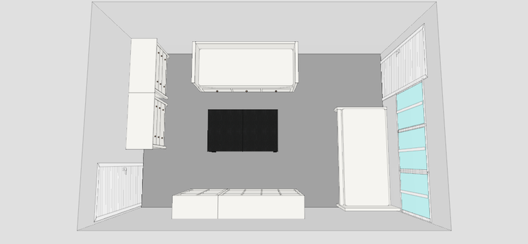 мне кажется, что в комнату больше влезет, чем на схеме) хотя может это только мой плохой глазометр)))все наши вещи не поместятся((( я думала может как то так над диваном обыграть: