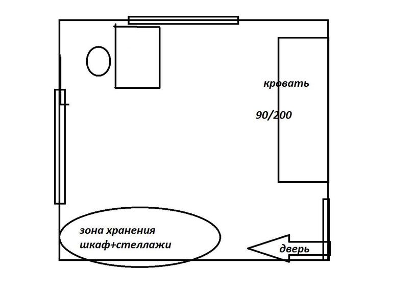 да дверь и правда может отвлечь. но не факт, если это,например, глухой коридор,те она на развлевлении тупика. но вот выше нарисовали прям лучше по ощущениям. и свет и стена за спиной и дверь видно. тогда и кроватьв самый раз и когда входтшь то как раз вся комната на обозрении