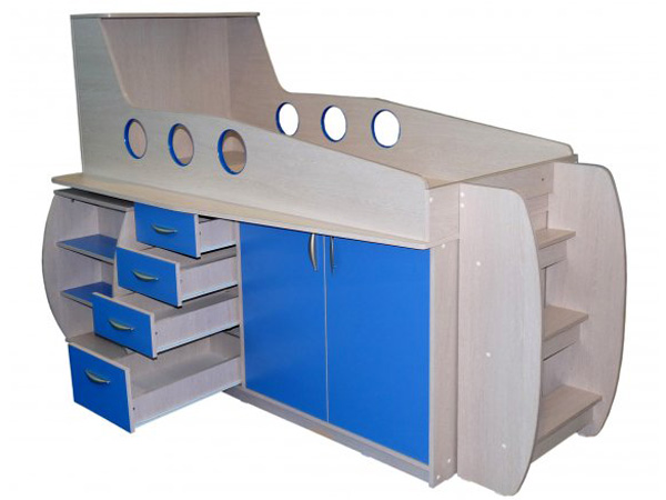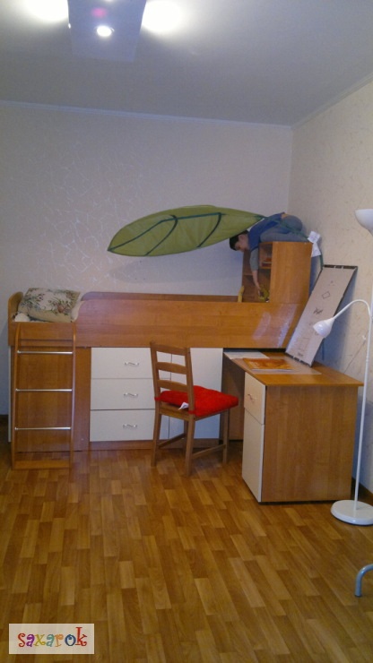 У нас такая, шкаф с торца в этой кровати, на фото его не видно. У меня в ней вся одежда ребенка. Мне очень нравится. Все в одном месте. В шкафу висят рубашки, брюки, в ящиках футболки шорты и пр., а в остальных тумбочках все его письменные дела