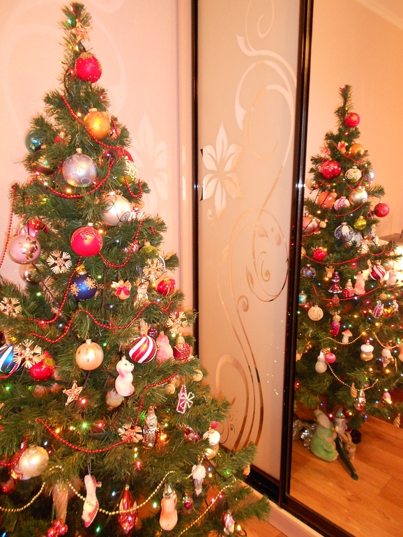 Подготовка дома к праздникам.Привет. Смотрю все украшают елку без дождика. А я украсила как во времена своего детства- все игрушки,не важно какого цвета, ну и дождик.