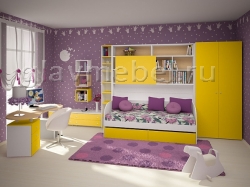 Тоже планирую мебель в желтых тонах,но желтого цвета сделать немного например нижние дверки у кровати,шкаф белый и элементы желтого на тумбочках или дверцах стелажа. А обои купила вот такие в низу рисунком а выше белые