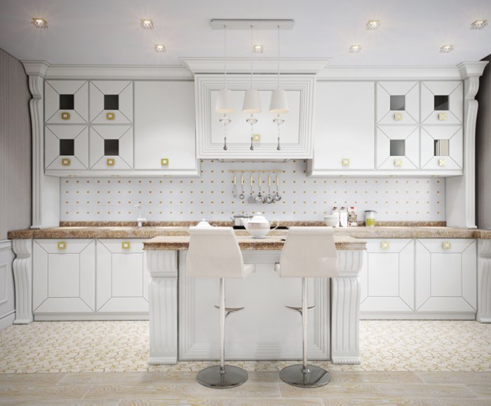 Интерьерное решение кухнидевочки, подскажите, пожалуйста, как будет смотреться кухня белый глянец (фасады верхние и нижние) и столешница под дерево (светлое, без желтизны)?