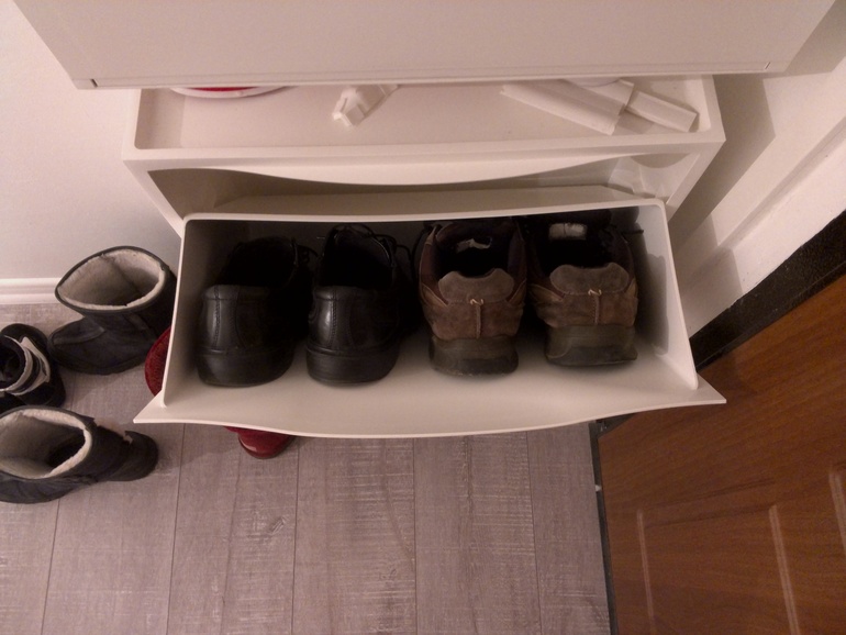 Первая совсем хлипкая. Не берите!Ну а вообще мне не нравится наша гостиница, где обувь почти вертикально. Носы повреждаются. Лучше полочки под углом как в серии пакс