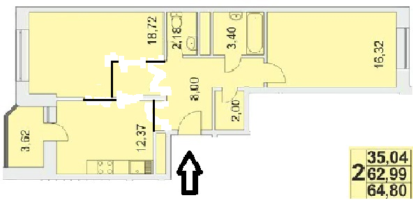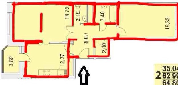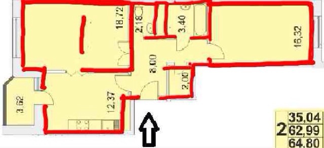 - заложить вход в кухню и проход между кухней и комнатой- уменьшить комнату (18 м2) и сделать из нее вход в кухню и эту комнату-расставить мебель кухонную начиная от того места где сейчас вход в кухню и около балкона сделать столовую