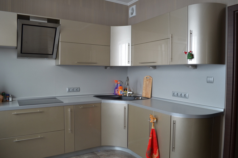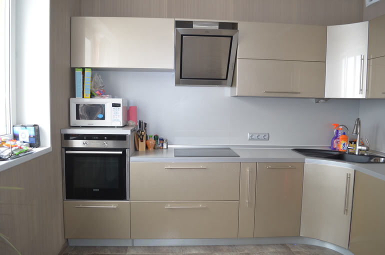 Тоже сейчас занимаемся кухнями,не знаем где заказать,то что хотим похожа на вашу,в кух.дворе сегодня посчитали на 180т.р.без техники.а почему решили такую вытяжку?и очень понр как вы сделали духовку