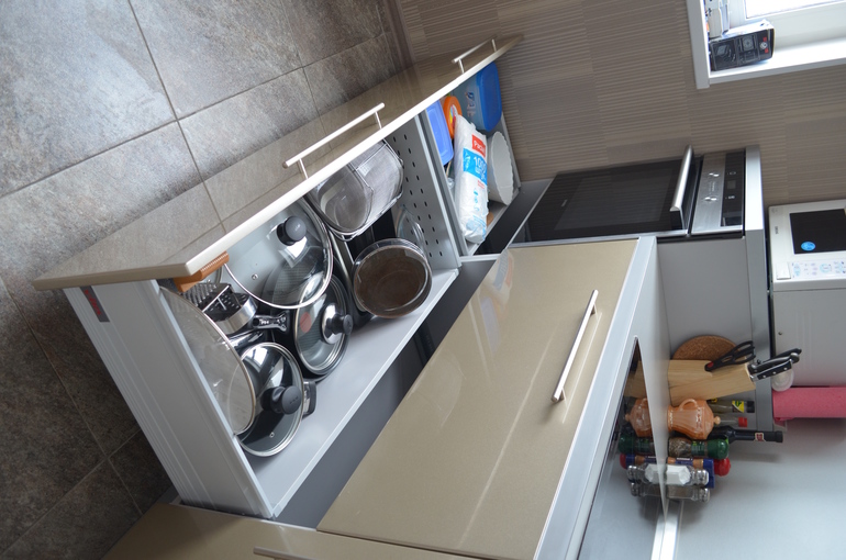 Катерина,очень красивая кухня, подскажите фирму где заказывалии удобен ли вам скрытый ящик под столовые приборы?