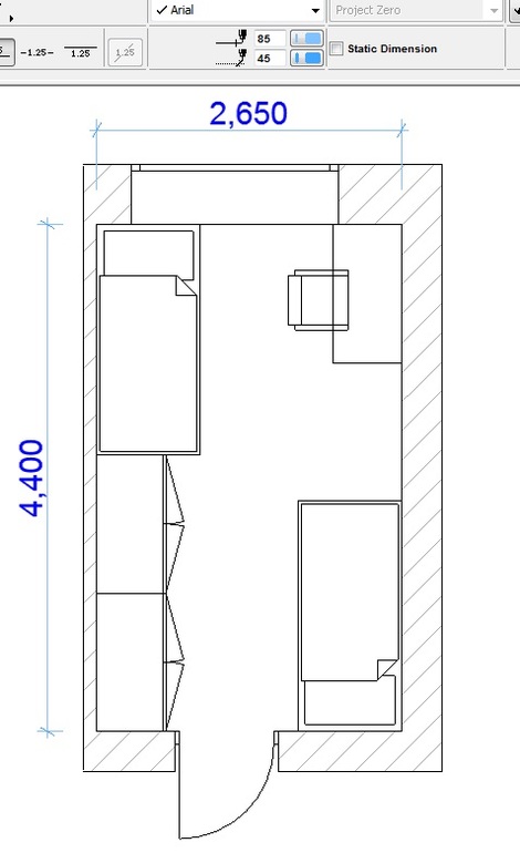 Для деток кровать 2 яруса, для маленького можно сделать внизу бортик, чтобы не выпал ночью, для вас либо кровать либо небольшой диванчик (на плане стандартные кровати 90х200), в плане шкафов, все зависит от точного размера заплечика около двери и в какую сторону открывается дверь.