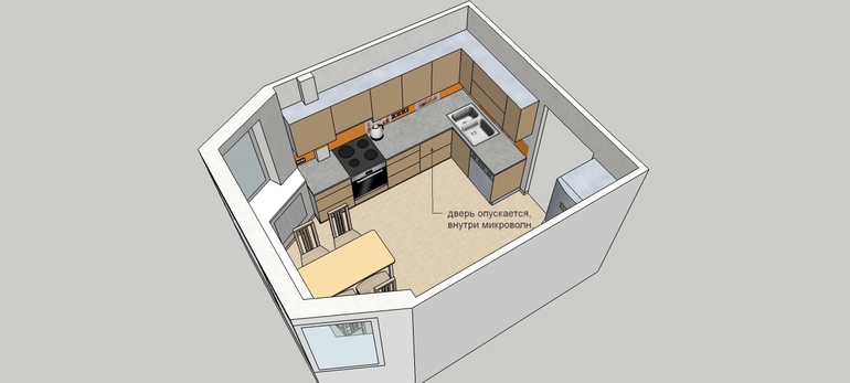п.с. единственное, думаю слева (там где микроволновка) сделать высокую колонку с нишей под микроволновку