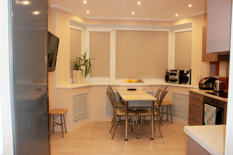 Интерьерное решение кухниДевочки, покритикуйте, пожалуйста вот такой проект кухни. у меня кухня с эркером (дом П44Т). Размеры гарнитура 3 на 1,8 м.