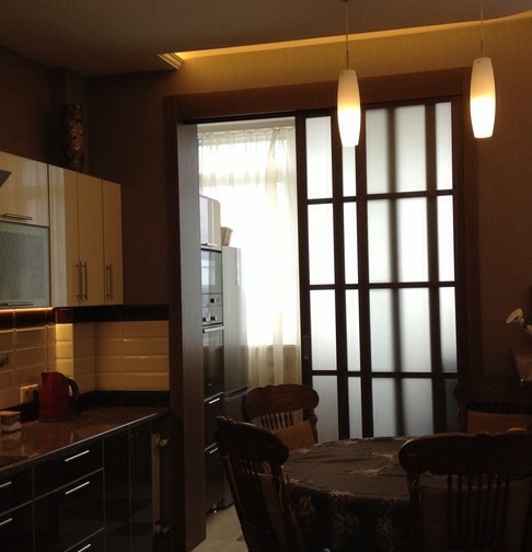 Мы "объединили", посмотрите в моем дневнике фото кухни. На месте окна и балконной двери поставили тройную стеклянную раздвижную перегородку. У меня там стоит холодильник и колонка с духовкой и микроволновкой. Правда у нас это лоджия.