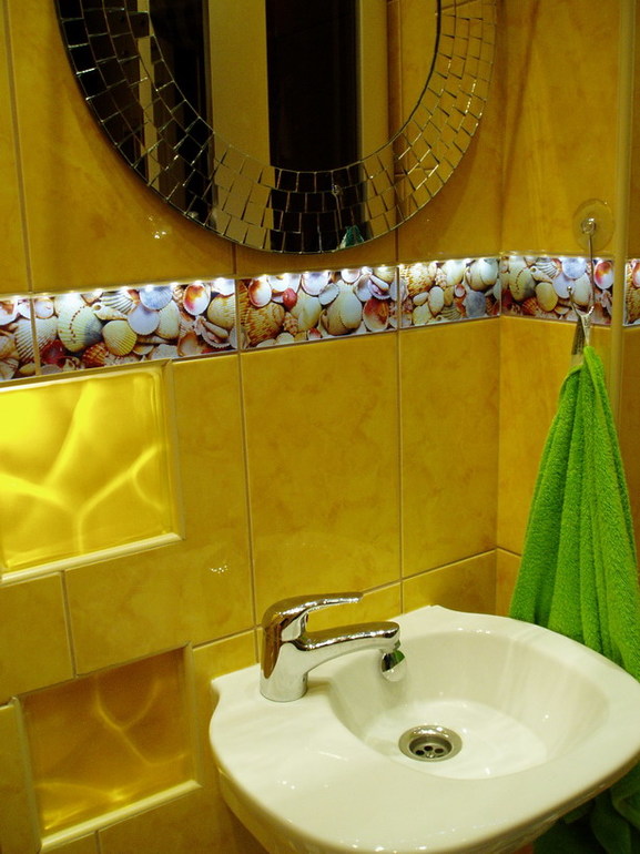 Наша компания помимо стеклянных фартуков для кухни занимается ещё и стеклянной плиткой, которая чаще используется как декор. У меня самой в ванне сделан бордюр из стекла со светодиодной подсветкой, работающей от датчика движения, и пока я больше ни у кого такого не видела