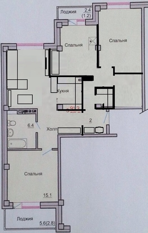 Мы вот тоже сейчас в процессе ремонта в новой квартире, для нас большой)) 85 м... У нас нет такого большого холла, тоже трешка вот с такой планировкой... Я бы была рада лучше такой планировке как здесь...) Просто у нас ситуация такая, что нужны все три комнаты изолированные, двум детям по детской каждому и нам спальню, а кухня у нас и как гостиная будет...Вот наша планировка: