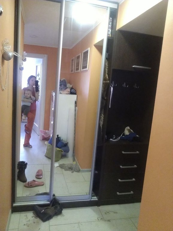 У нас с дочкой тоже в основном трикотаж и джинсы =). Вешалки пустуют.Я если буду переделывать, то останется только такой шкаф вокруг окна со столом и кровать (с выкатным доп. спальным местом) в виде диванчика.Была идея подиума, но не нашла кто сделал бы по приемлемой цене, пришлось отказаться..