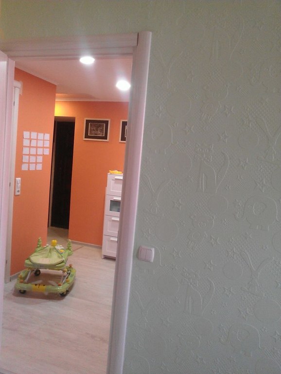 Поддержу Фасолину, для детской точно неее... На ощупь действительно колючие, но вот про краску спросила, папа сказал таких проблем не было, брали их по 2000 за рулон, сфотала)) ( как раз была в гостях у родителей)